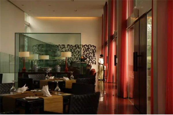 这里的餐厅也相当隐秘,由一条绵延的玻璃走道引入,与室内的简洁不同,餐厅的装饰活跃创新,吃饭的氛围与食欲也随之大增。入夜时分烛光摇曳,中式、西式、印尼式佳肴轮番呈现将饕餮盛宴推向高潮。