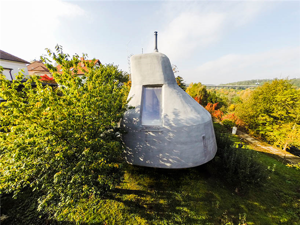 考虑到地块标高的变化,住宅在入口处设了一道钢制桥梁。Šépka将住宅的主要起居空间设置在地面标高处,其中有一处隐藏的双层通高空间可以最大化外部视野范围。厨房、卧室和浴室也设置在这一层。从起居室通往上层主卧的楼梯可以到达下一层楼面。最顶层是私人咖啡厅,安装有落地窗提供日光和美景。