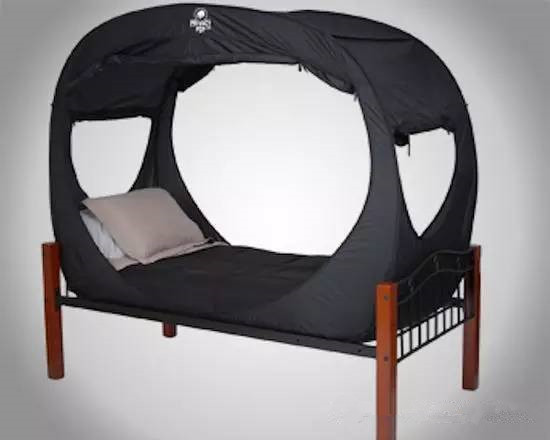 如果你苦于没有一个属于自己的私人空间,“privacy pop”帐篷无疑会满足你的要求,让你即使是在合用的卧室中也能享受到奢侈的私人空间。其两侧的拉链窗为使用者提供必要的光线和空气流通。这个可拆卸的帐篷可以容纳两张双人床或两张双人大床,同时它还可以折叠起来便于运输和携带,此设计有点类似我们夏天用的“蚊帐”,只是使用材料不同而已,私密性更好。另外方便携带。