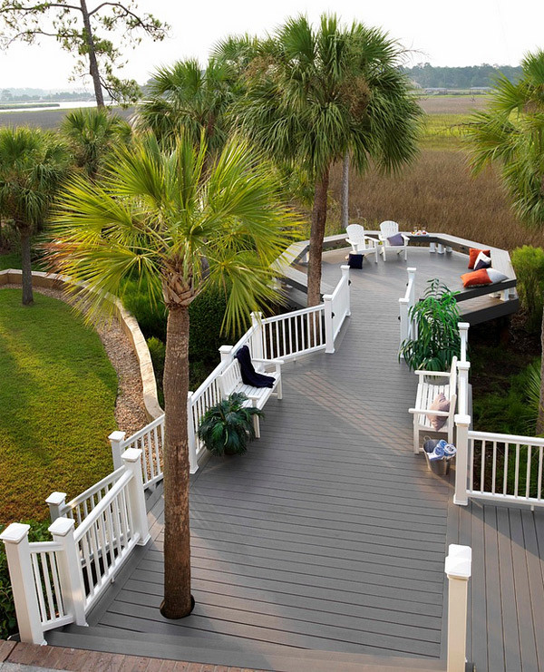 当然了,木平台甲板的设计风格任由设计师发挥,可以通过添加树木或绿廊,甲板的设计有很多种方式,下面这些案例你可以根据自己口味来重新设计,现在开始吧,一起看看。