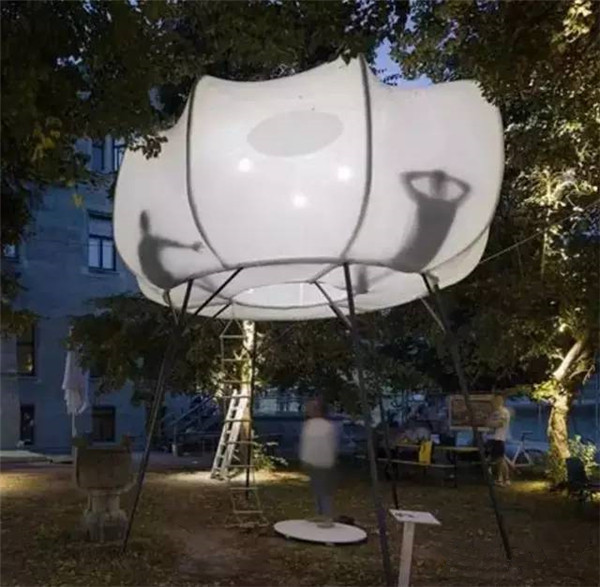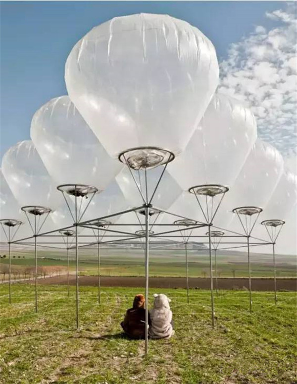 这个透明气球提供了云朵一样的阴影保护设计师就是想用这样现代的方式去追忆远古的故事