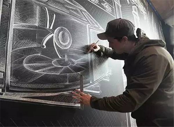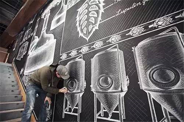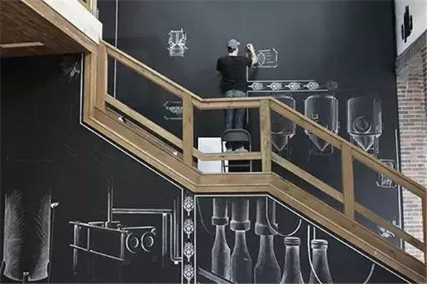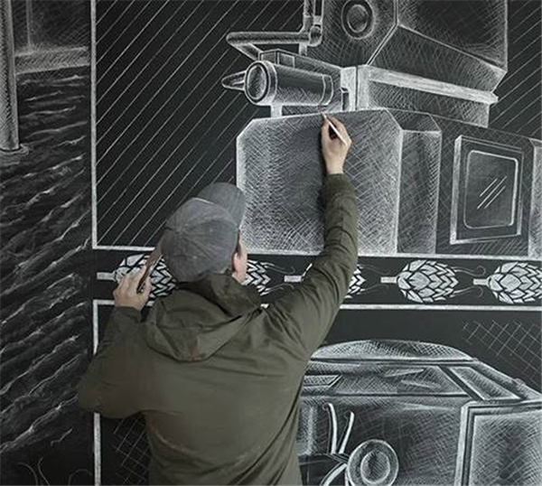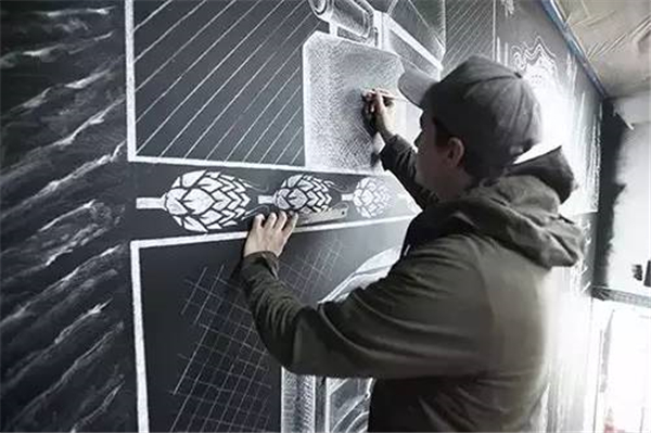 现在流行用粉笔在墙上作画