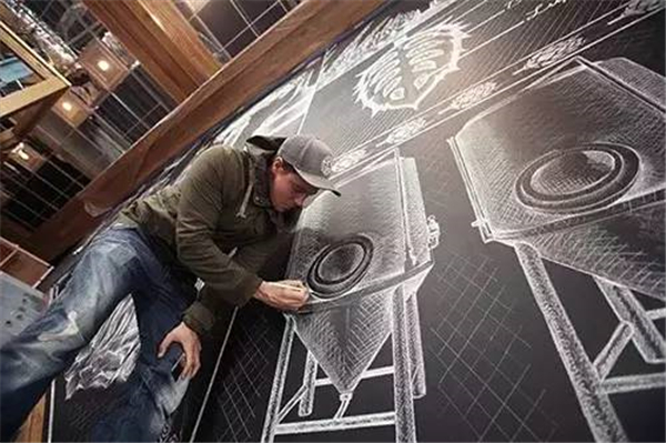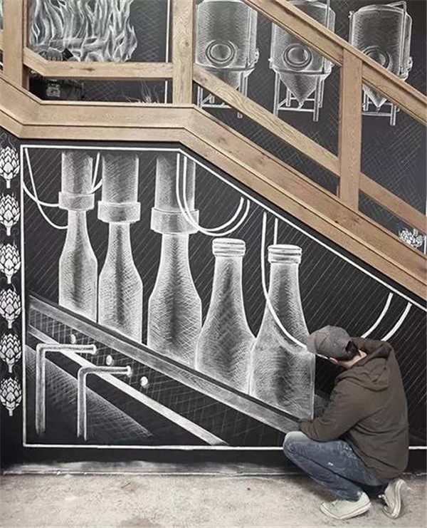 加拿大艺术家Ben Johnston,专注于创作传统字形艺术及插画。该项目是Ben Johnston为美国阿什维尔城的一家名为Sierra Nevada的啤酒公司所创作,仅使用粉笔绘制,总画幅面积1600平方英尺(约148平米),绘制周期长达3周。