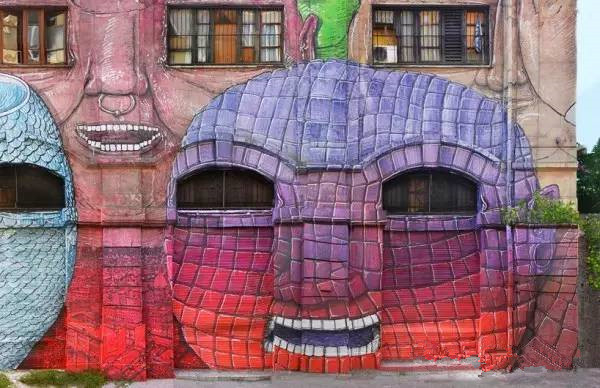 Blu 的大幅超现实壁画作品