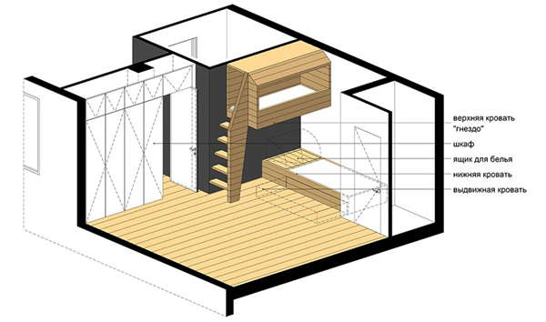 小时候,我常常幻想能在自己的房间里再做一个小屋子,把自己藏进去。当然自己没有这个男孩这样幸运,他的家位于莫斯科一间公寓里,当家里装修改造时,他的爸爸邀请了PROJECT905的设计师。
