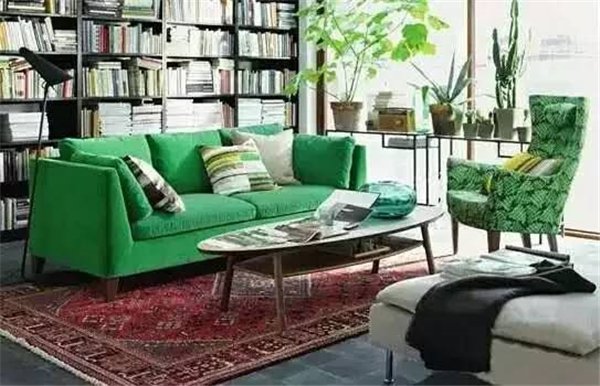 ▲绿叶花色包裹的高靠背沙发为客厅注入清爽,打破一字型沙发一板一眼的表情。