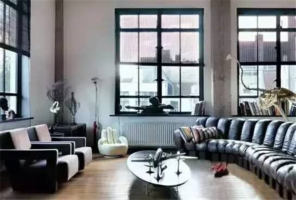 ▲方体块扶手沙发围合出老男孩气质的风格客厅。
