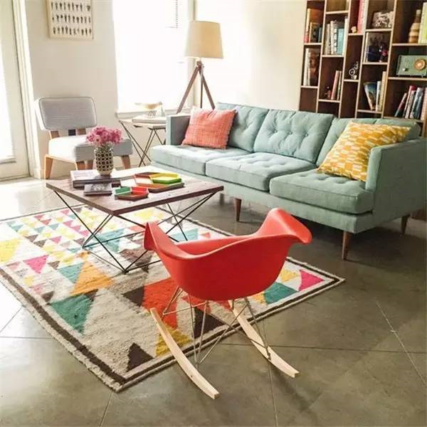 ▲普通的布沙发不免乏味,搭配一把摇椅则显得妙趣横生。