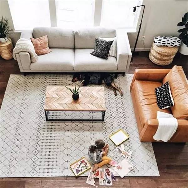 ▲平平无奇的基本款沙发,有了材质碰撞,也摆脱了平庸,提升了时尚气息。