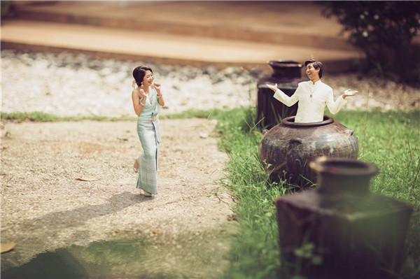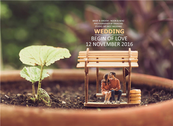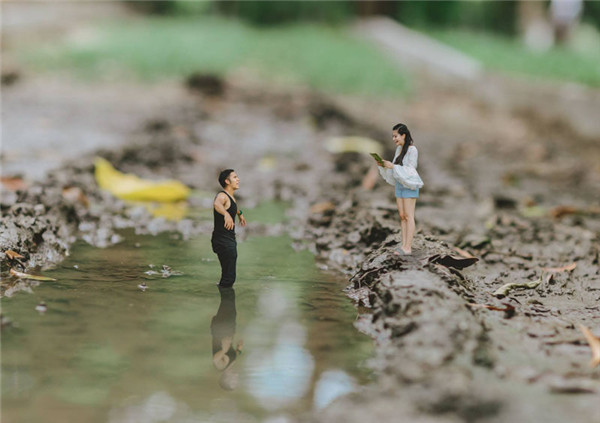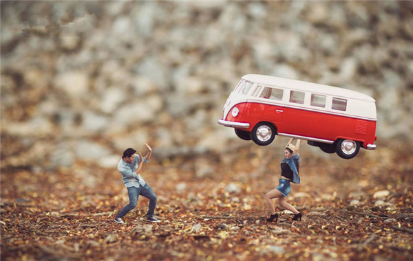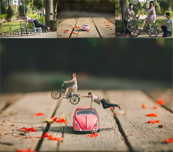 泰国婚纱摄影师把夫妻拍成了微缩小人