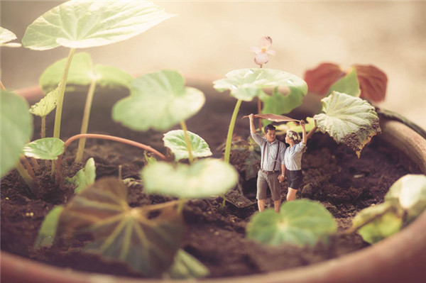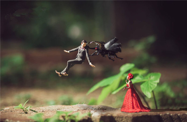 在泰国,有一位名为คนตัวเล็ก的摄影师,他的作品受到了很多人的关注。คนตัวเล็ก大多时为新人拍摄婚纱照,不同的是他把夫妻们都拍成了虫子般大小。仿佛进入了另一个微观世界中。