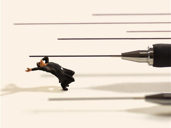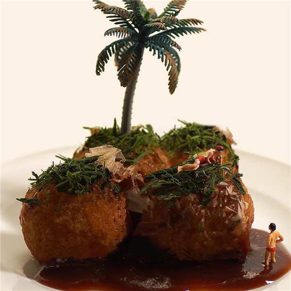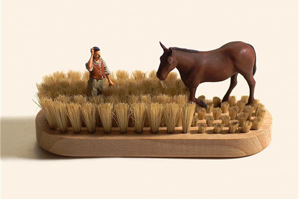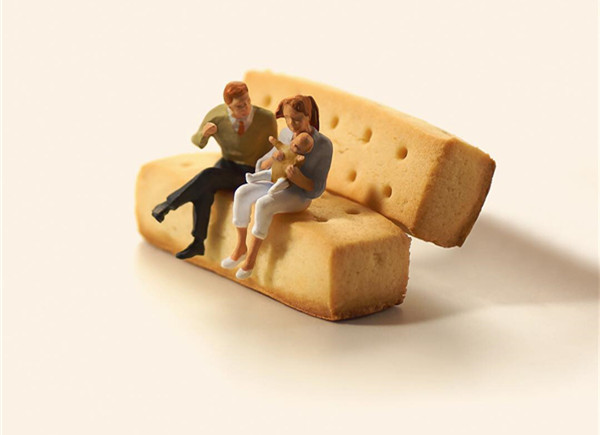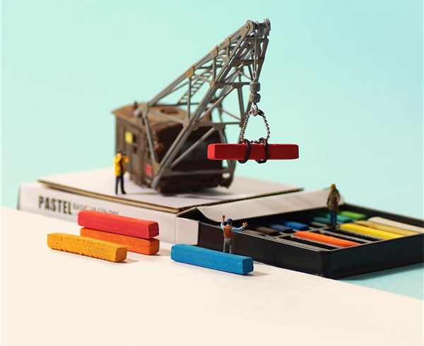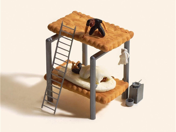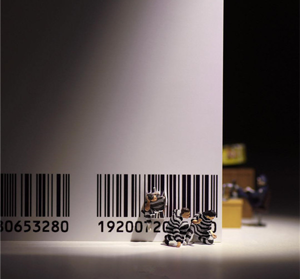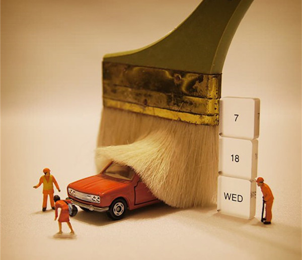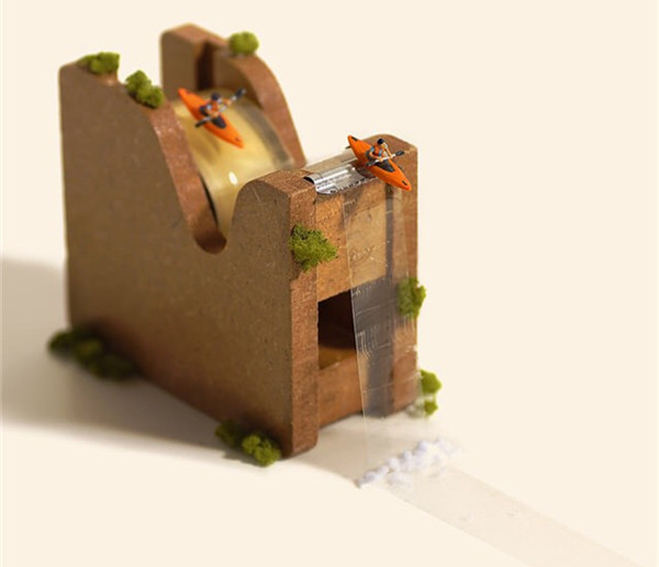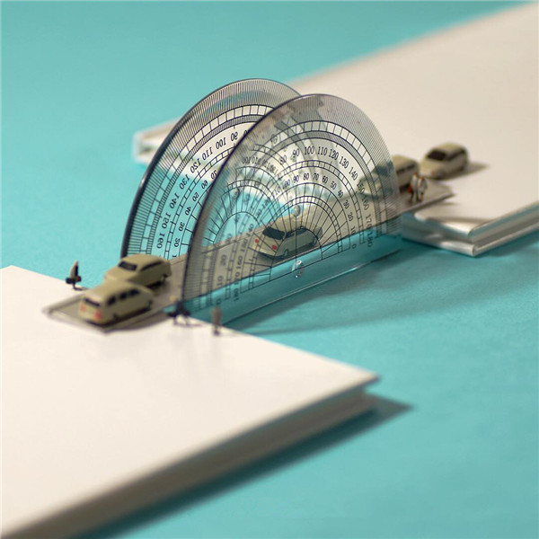 Tanaka Tatsuya从很早就开始每天拍摄一张微型照片,而且全部是以日常生活的常见物品为主角,在他的镜头中,再平常不过的手机、唱片、饼干、水果。蔬菜等都小巧入镜,巧妙的构图和创意的摄影赋予了这些平常小物更生动的生命。照片中的小人们就好像是我们自己,在烦闷的生活中,缩小自己,放大身边的寻常小物,更添生活的情趣和快乐。