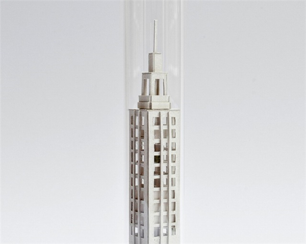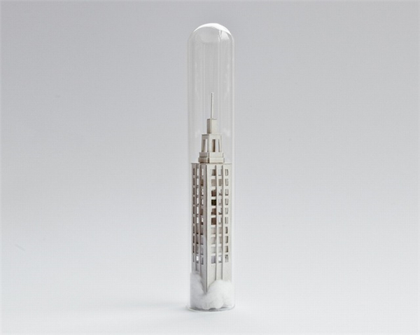模型最后被封装在类似试管的玻璃器皿中,感觉这也许是我们未来世界的写照,给试管加个新风系统,就再也不怕雾霾喽~