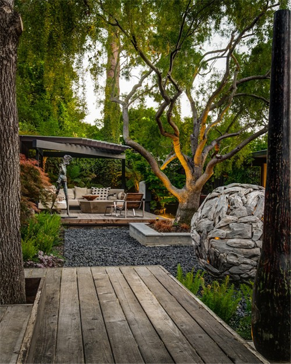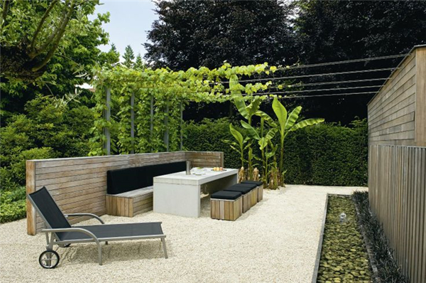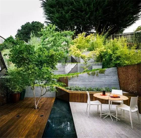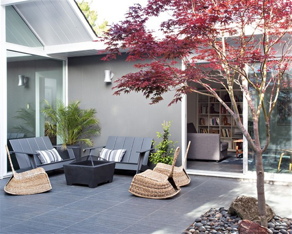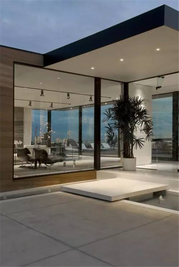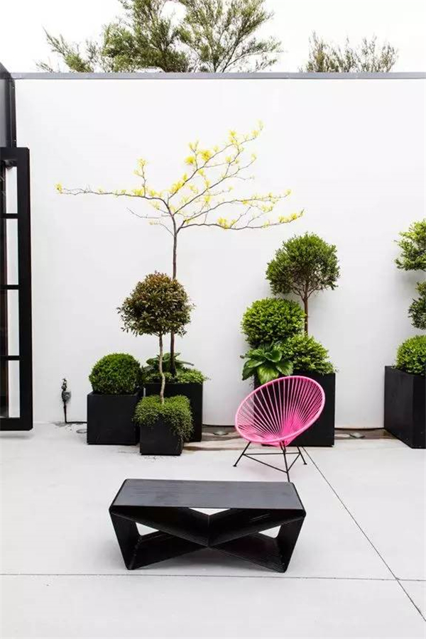 现代主义风格体现的是一种简约之美,现代风格的庭院最适宜建造在现代主义风格或20世纪末建成的建筑的周围。任何建筑,只要不是很典型的规则风格,都可以配合现代风格的庭院。