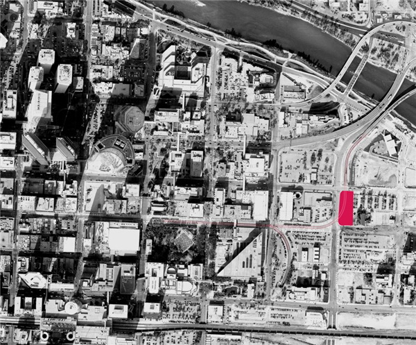 ▼位于铁路一侧的卡尔加里城市广场