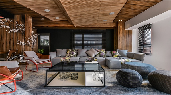 ▲趣味的线条变化与丰富的质材搭配,堆栈空间的视觉层次。