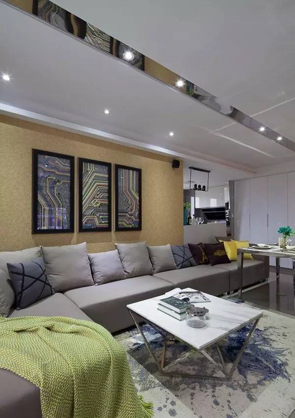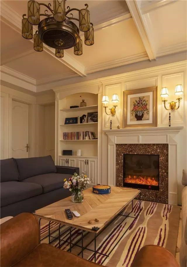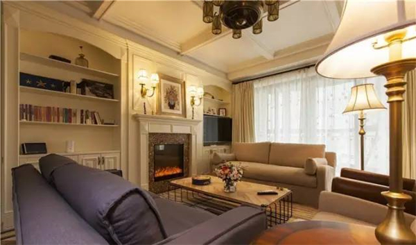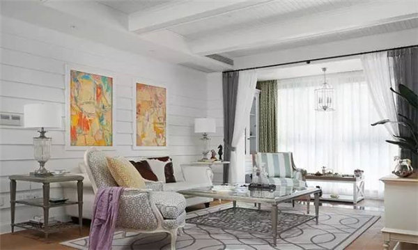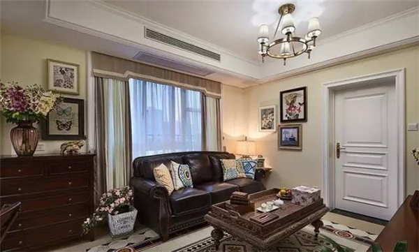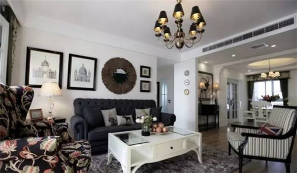 玻璃、不锈钢、镂空等现代材质与工艺,搭配滚边沙发使美式客厅摩登时髦起来。