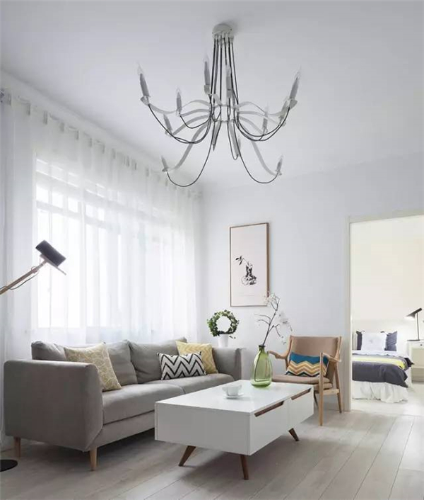 ▲规整的铁艺线条排布,让无脚沙发和地毯形成的厚重感一扫而空。把铺地板的鱼骨纹用在茶几面板上酷毙了。