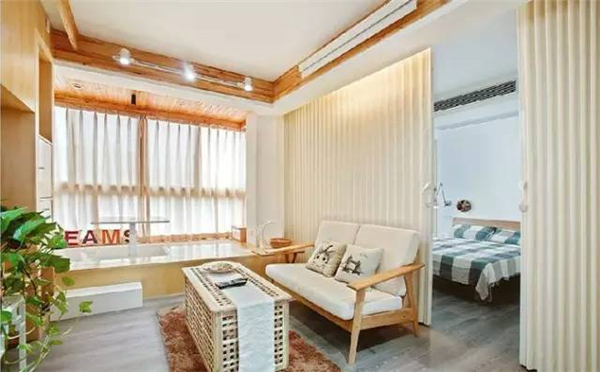▲笔直的沙发和茶几线条,打造出日式规整感。
