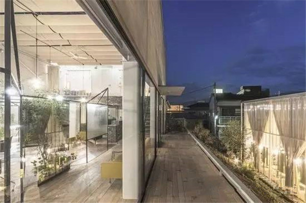 原有建筑和扩建的地方隔着一个坡形小花园,设计师利用天窗和户外花园,营造一个更加开放的环境。