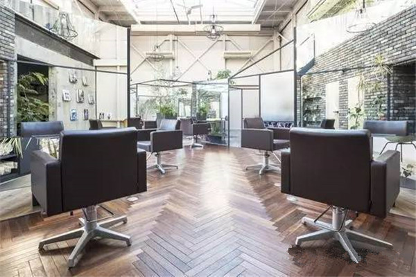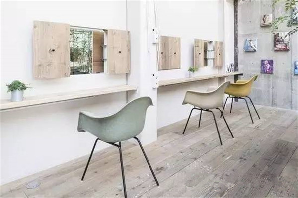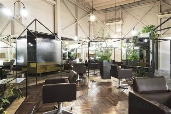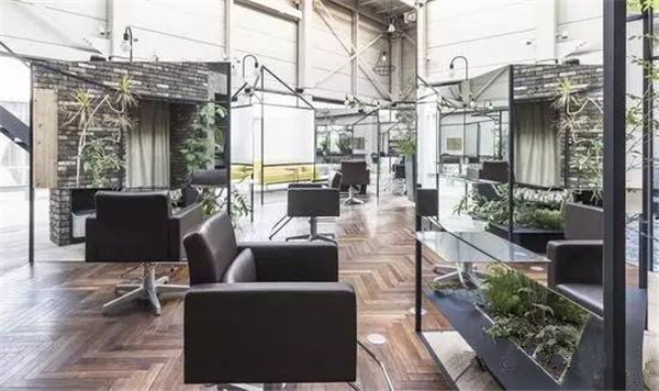 剪头区铺上了『人』字形的木地板,其余区域是砖石或条纹,非常明晰。墙面一面保留了工厂的气息,另一面铺上了砖块,在镜中反射时能看到砖墙搭配绿色植物的样子,有生活气息。