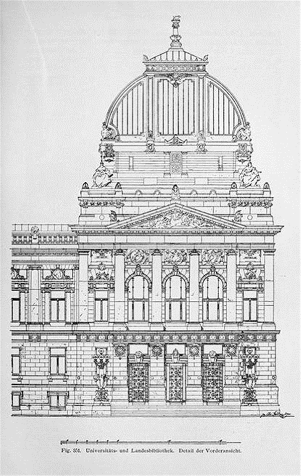 ▲大学图书馆阅部分立面,斯特拉斯堡