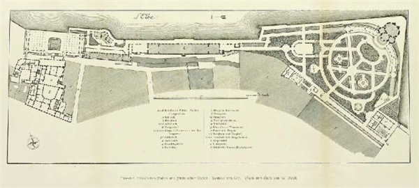 ▲布吕尔宫及其花园平面,德累斯顿