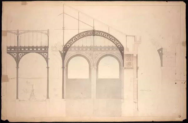 ▲拉布鲁斯特设计的圣吉纳维夫图书出版社剖面,巴黎