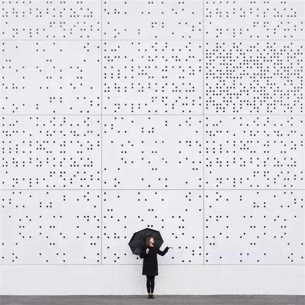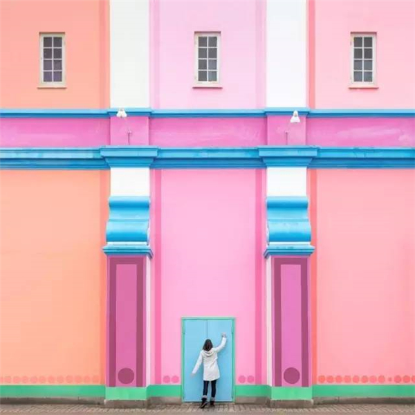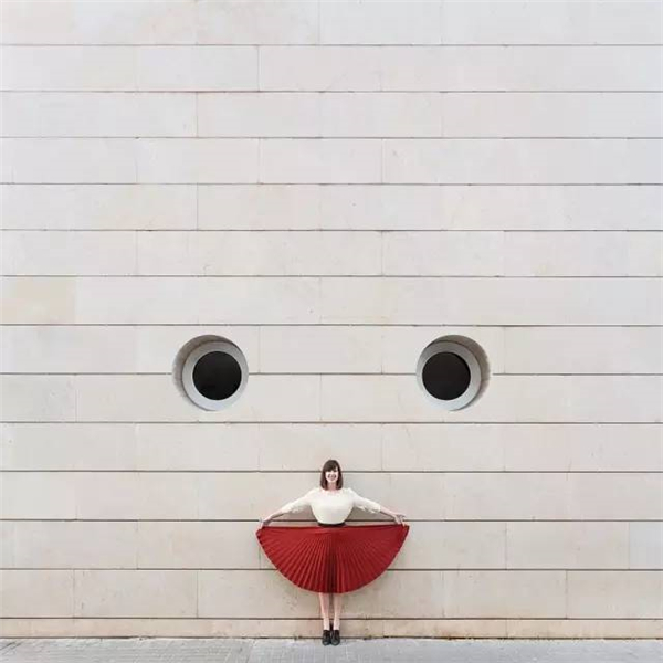 ▼优雅的一袭红裙,配合外墙上的“双眼”,一张笑颜舒展的脸尽显。