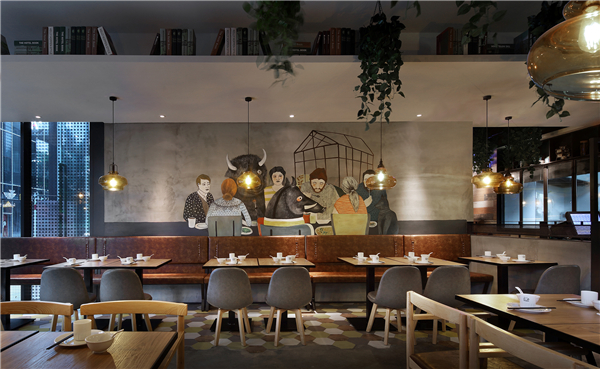 每个空间在原始状态时并不自带文化,某种程度上说,本案所追求的简洁,是基于“去内涵”的需求,设计师在本案的设计中不以“内涵”标榜而追求繁复,这个空间反而强调情感的温度,有趣生动的墙画与年轻的目标客群达成一致,而食客为这个空间带来了内涵。