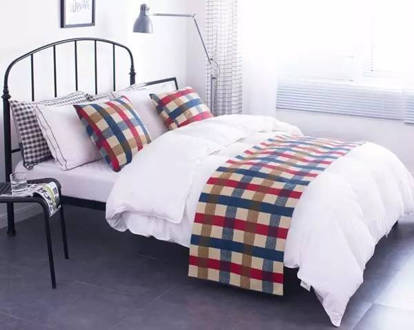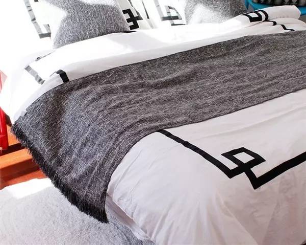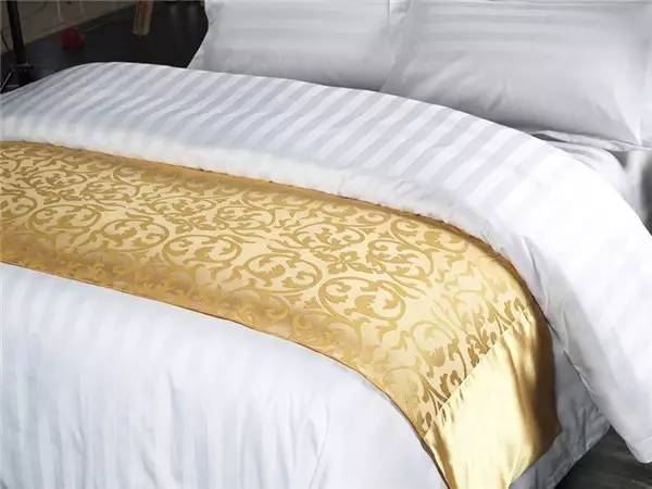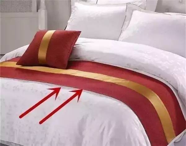 据说床尾巾起源于美国,因为美国人喜欢穿着鞋就往床上跑,而鞋子的部分可以放在床尾巾上。一般客人来酒店住宿,大多都会将随身携带的小包、手机等直接放到床上,床尾巾能起到保护床品不被弄脏。