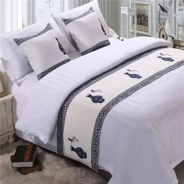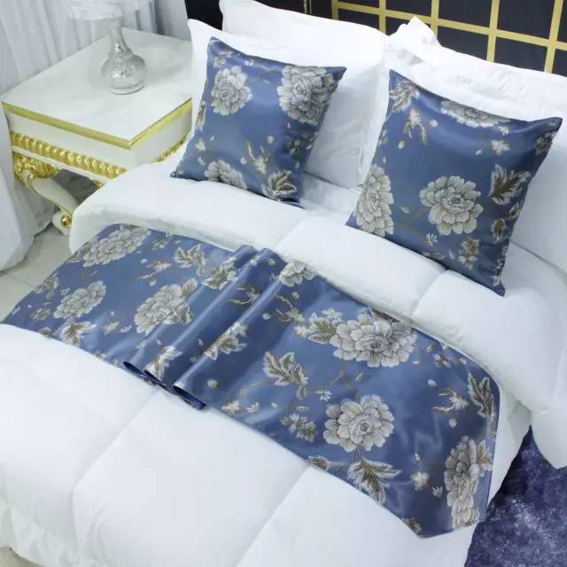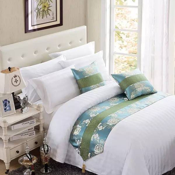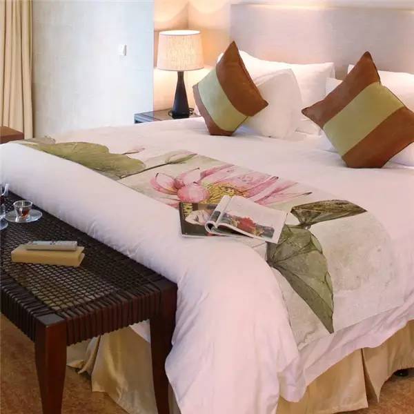 床尾巾风格迥异、图案花色也非常多,能够为酒店白色的床铺起到很好的装饰作用,使房间看起来更美观、更气派。