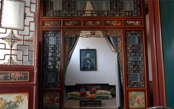 这雕花木床床头墙上所挂的画中人就是传奇人物周莹。