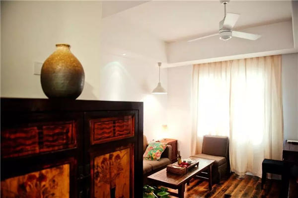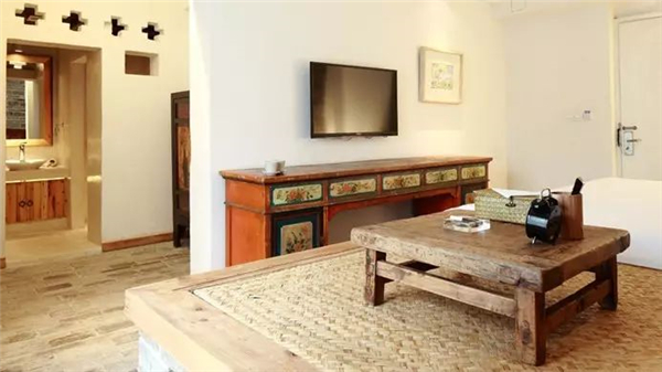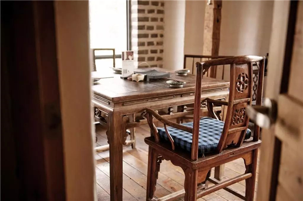 即使是没有保留炕的套房里,也摆设着带岁月感的旧式实木家具。和木材,青砖相称,散发一种不破败的年代感。
