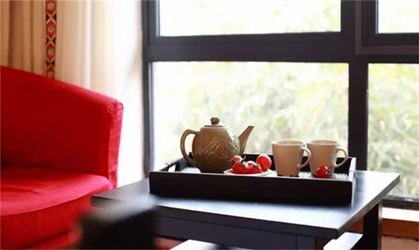 客房保留关中大炕作为睡床,极具陕西大院特色。炕头还有小茶桌,生活简直惬意。