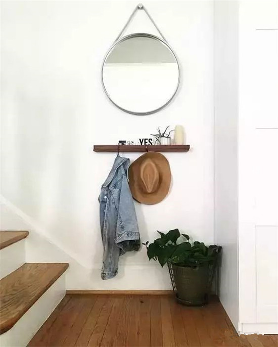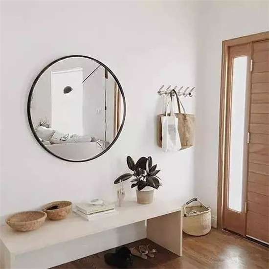 在玄关处挂上一面圆镜,外出时再照照自己的妆容,更有自信出门了。