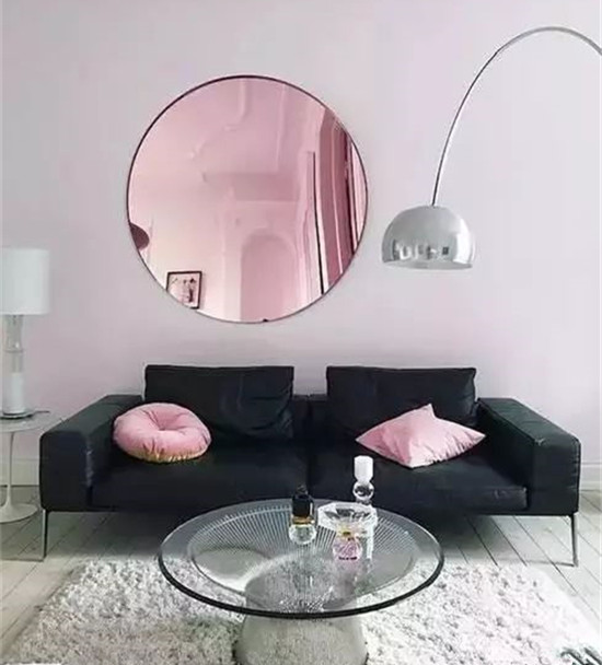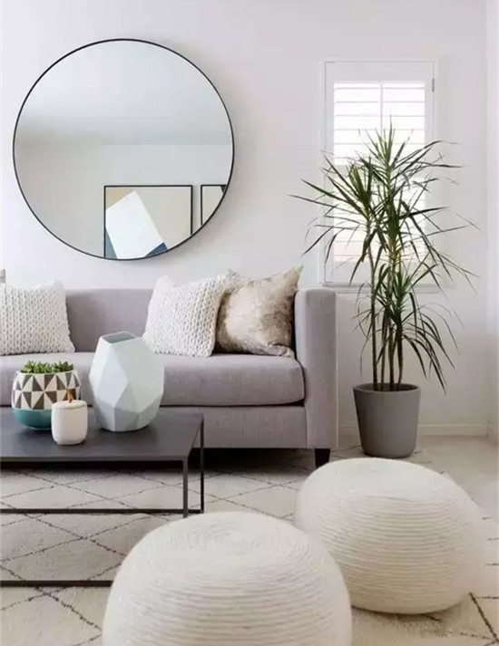 对于空间不足或采光不好的客厅,圆镜不仅能从视觉上大空间感,还可以提亮光线。客厅里装镜子,每次经过它的时候都会不由自主的照一下。
