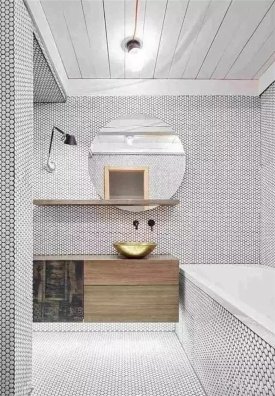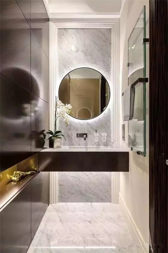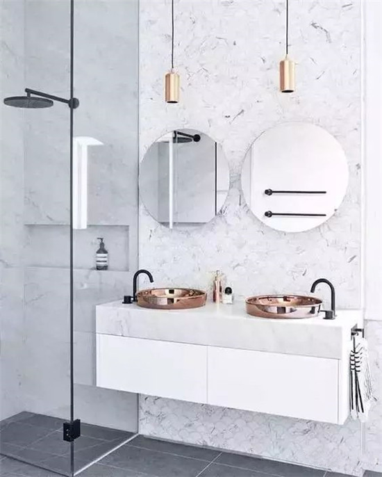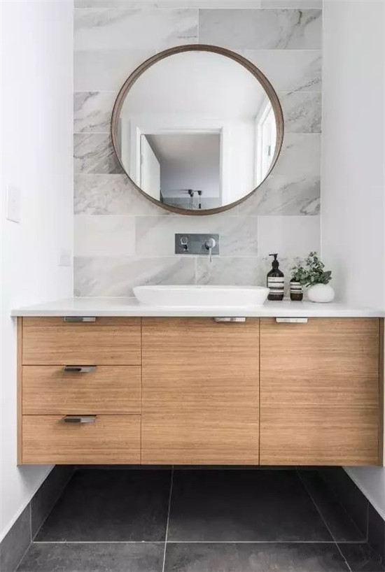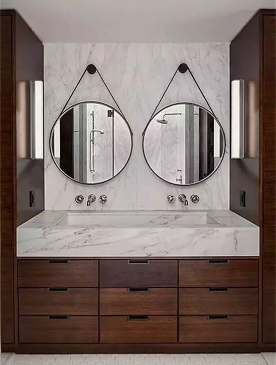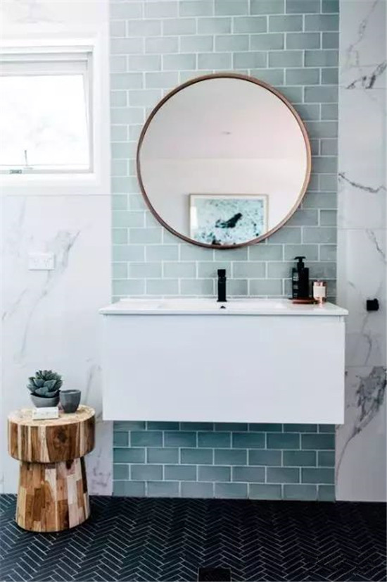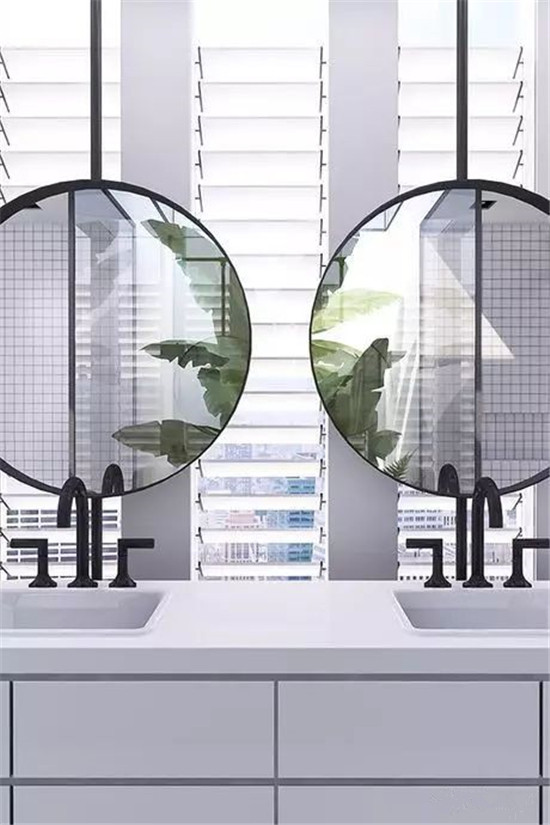 镜子是卫生间洗漱台的主角,选择什么样的镜子能决定浴室的风格,圆形的镜子更具有装饰性。