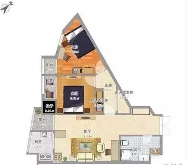 这个户型很适合弄成单身公寓,装修的温馨点,一个人也不显得寂寞!