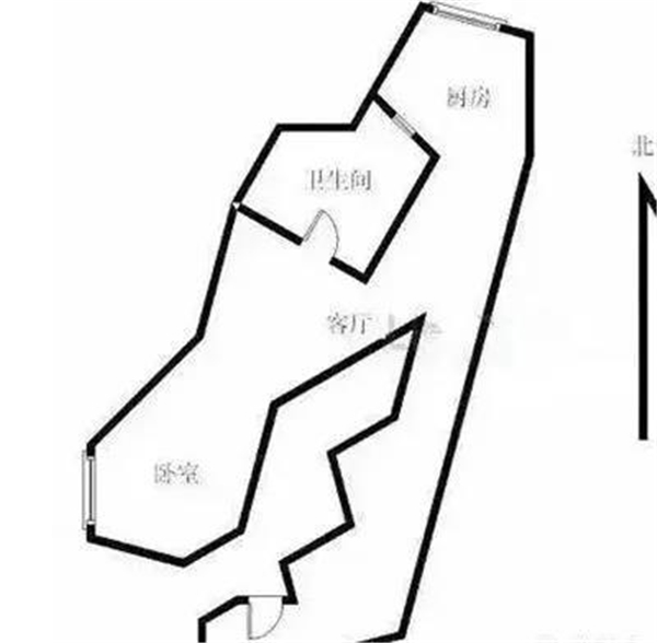 这就是典型的在小面积上也要啥都有的户型!不规则图形,但如果你找个靠谱的室内设计师,设计好后应该会很酷!