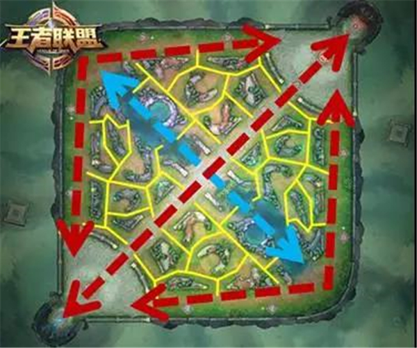 (1)道路之间交错纵横,交通便利,便于英雄们之间在偶遇时进行亲切友好的交流(打架)