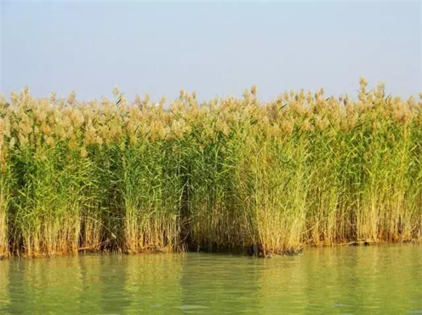 芦苇(Phragmites australias Trin.)秆高1~3米,直径1-4厘米。多年水生或湿生的高大禾草,多生长于池沼、河岸、溪边浅水地区。芦茎、芦根还可以用于造纸行业,以及生物制剂。由于芦苇的叶、叶鞘、茎、根状茎和不定根都具有通气组织,所以它在净化污水中起到重要的作用。