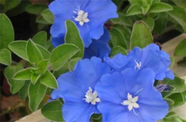蓝星花是多年生半蔓性常绿灌木。花期全年,适合庭院美化,花坛,盆栽或地被。蓝星花最值得留意和引人注目的地方,在除了它的蓝色花朵很清新外,还有就是每天都开新的花,但是花朵的寿命只有一天。因此,每日所见的花都不同于昨日,都是新的花。就像是新的一天的开始一样。(这个有点浪漫)