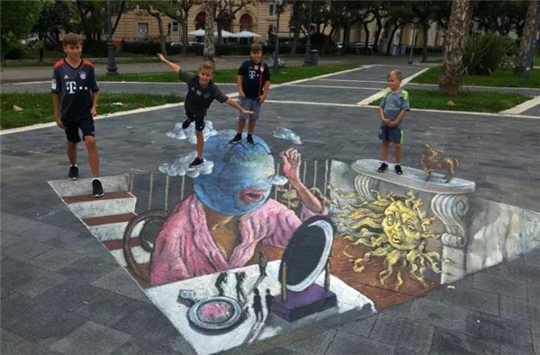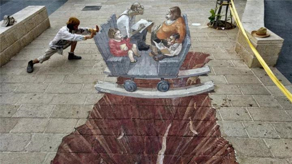 朱利安·贝弗(Julian Beever)是一位英国粉笔艺术家。自20世纪90年代中期以来,一直在路面上绘制粉笔图纸。他可能是五个3D街头艺术家中,被称为“街头艺术网红”。