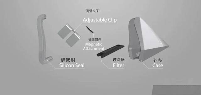 并且佩戴上后,怎么大幅度动作也不会被甩掉。值得一提的是,它佩戴也非常方便。首先,把一个夹子戴在鼻子上,然后它直接套在鼻子上就好。