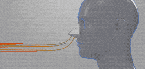 吸入鼻子中的空气,经过过滤器便可以把有害颗粒隔离。