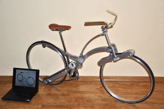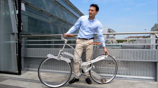 【环球网综合报道】据澳大利亚Gizmag网5月6日报道,为节省更多空间,方便存放,意大利设计师Gianluca Sada设计并制作出了一款名为Sada Bike的铝合金折叠自行车。Sada Bike全长仅26英寸(约66厘米),采用无钢圈设计,折叠起来只有雨伞大小。