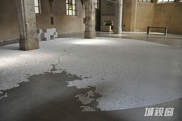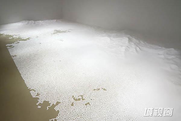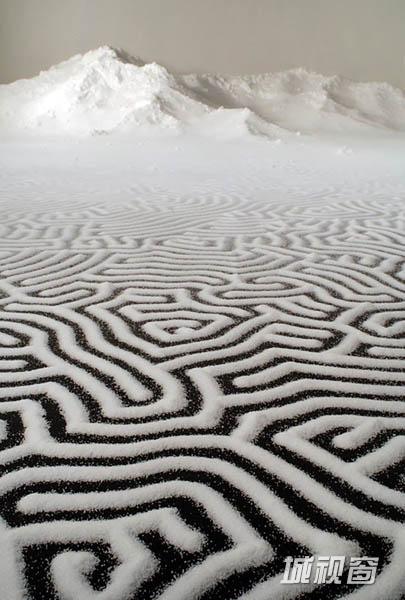 日本艺术家山本基 1966年出生在广岛,一开始在造船厂工作,直到22岁的时候才决定全身心投入艺术。六年后的1994年,他的妹妹在死于脑癌并发症,之后为了纪念她,山本基 开始用洁白的盐来创作迷宫般的装置作品,方法是把盐装在一个通常用来放机油的小塑料瓶中。“在地板上用盐画迷宫就像追寻的我记忆的轨迹一样,记忆总是不断的更新覆盖,新的进来旧的消失。”一方面为了转移自己的悲伤,另一方面也为纪念他的妹妹,用盐来创作是因为撒盐是日本葬礼中一个重要的仪式。虽然每一部分都按既定的方式去创作,但整个作品来说完全是即兴的,在几百个小时的精心浇筑过程中还是会出现错误和纰漏。在作品完成几个星期之后,邀请公众一起用袋子或罐子将盐重新洒回大海。
