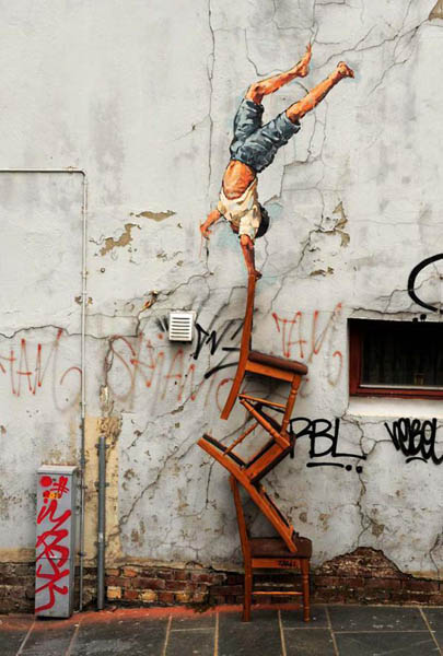 街头艺术,顾名思义,即使在街头巷尾展示的一种艺术形式。主要包括街头涂鸦艺术以及街头行为艺术。在国外的街头,有一些艺术爱好者会把自己装扮成雕像,摆出各种姿势,在游客的注视下静静的站立着,还有的会在地面上创作~而他们所需的只是一盒粉笔和每个人的目光~那些地上的画作充满了立体感,给人们一种在视觉上的震撼。这些人的创作往往让人看不出真或假。