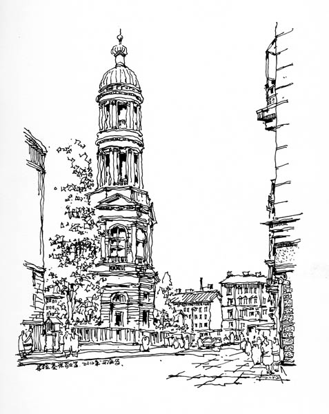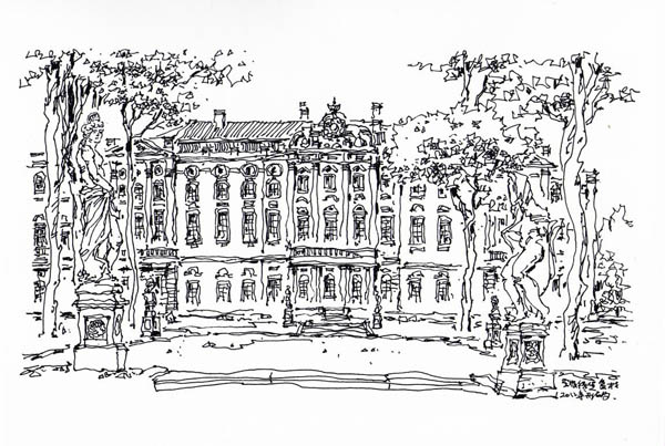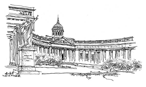建筑是具有神秘色彩的人类活动之一,不断变革与发展,始终进步。建筑艺术是人类文明与智慧的结晶,既体现民族性,也具有时代感。在古代,建筑与绘画学科相互渗透与融合,一部《西方美术史》几乎也是一部建筑史。从古代艺术、中世纪艺术、文艺复兴艺术、巴洛克艺术、古典艺术至现实主义、印象主义、立体派、未来派及超现实主义,美术走过的历程也是建筑艺术走过的历程。而一座建筑艺术林立的城市从诞生至形成,既是人们智慧的体现,也是时代技术与民族文明的体现。在人文、艺术与视觉形象的结合上,圣彼得堡无疑是极具特色与代表性的城市之一。圣彼得堡也以其浓厚的艺术氛围成为当今名副其实的“艺术之都”。所以,圣彼得堡的建筑文化与历史,在今天建筑学的学习中仍值得我们仔细品读。自此通过自己在圣彼得堡列宾美术学院留学期间的学习经历,尝试着从课堂走向城市,从视觉转向手绘,寻找与记录圣彼得堡城市的魅力。